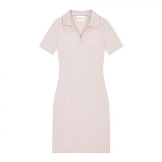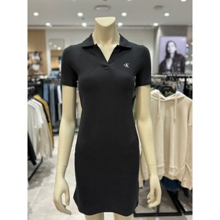 CK진 여성 스몰로고 슬림핏 카라 반팔 원피스(J223498-BEH)