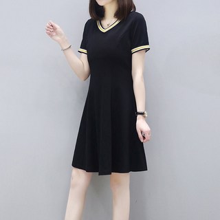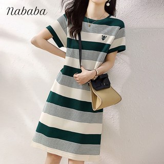 나바바 NO362 여성 캐주얼 단가라 자수 포인트 반팔 원피스
