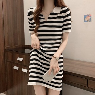 후암마켓 카라원피스 미니 미들 스트라이프 반팔
