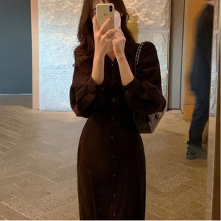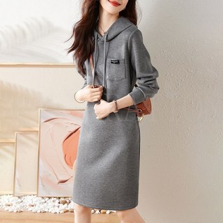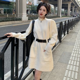 SAHINER 여성 봄가을 긴팔 쇼트니트원피스 루즈핏 통근 BQZ13