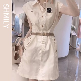 POMTOR 원피스 여성 칼라 셔츠원피스 허리 슬림 반팔 원피스