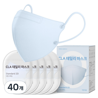 CLA 데일리 새부리형 2D 컬러 마스크 어린이 소형, 5개입, 40개, 스카이블루