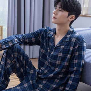 ANYOU 남자 사계절 데일리 패션 체크 잠옷 세트 클래식 긴팔 상하세트 홈웨어 세트