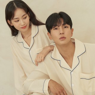 어나더디 커플용 긴팔 샤무즈 실크 잠옷 세트