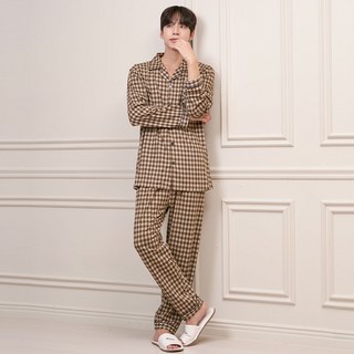 엘라운지 남여 모던 면기모 체크 파자마세트
