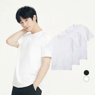 면티백서 순면 남녀공용 라운드 반팔 티셔츠 화이트 3장 세트 이너 반팔티 3P