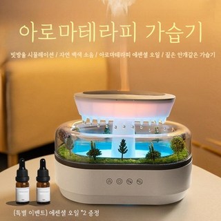 아오라 빗소리 가습기 무드등 물멍 비구름 조명, 화이트