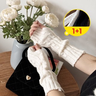 1+1 남여공용 울 니트 골지 핸드워머 겨울 방한 반장갑 손등 팔토시 암워머