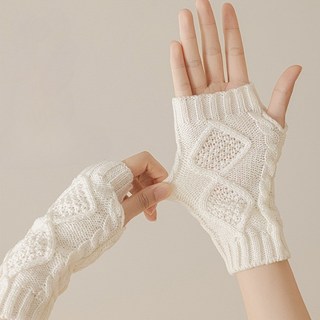 [초록네모] 천연버진울 포근한 여성용 암워머 니트 장갑 자유로운 손가락과 따뜻한 손목