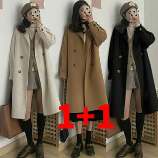 Asure 여성 하프코트 모직 코트 긴팔 재킷 롱코트 1+1
