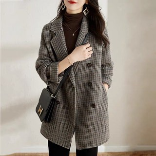 COSYEVNO 봄 여자 헤링본 모직 코트 하프 캐주얼 루즈핏 외투