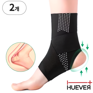 휴에버 고탄력 편안한 슬림 발목보호대, 블랙, 2개