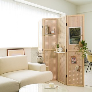 쥬헤브 인테리어 파티션 가벽 셀프공간분리 이동식 칸막이 원목 타공, 메이플, 3단