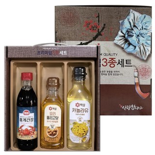 명절 선물 프리미엄 3종 선물세트 홍게간장 올리고당 카놀라유, 1세트