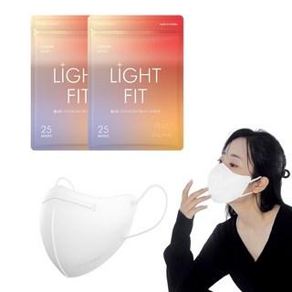 필나인 라이트 핏 2D 보건용 마스크 KF94 중형, 25매입, 2개, 스노우화이트