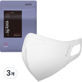 필나인 귀편한 이지핏 새부리형 컬러 마스크 성인용 대형, 25개입, 3개, 퓨어 화이트