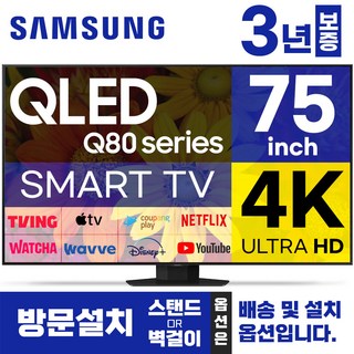 삼성전자 4K UHD QLED TV, 189cm(75인치), KQ75QD80AFXKR, 스탠드형, 방문설치