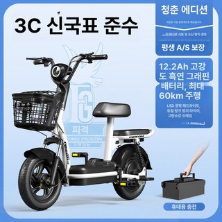 롤리버디 전동스쿠터 전기 자전거 출퇴근용, 17Ah (배터리1개), 화이트블랙