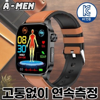 액션맨 글루코워치 ET 건강데이터 스마트워치, 블루투스, 51.3mm, 블랙실리콘+브라운레더
