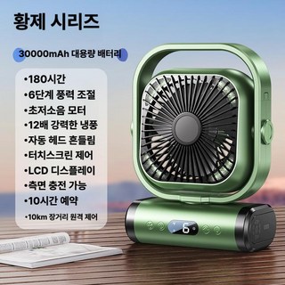 DUP 캠핑용 충전식 미니냉풍기 야외활동 야외작업 소형 보조배터리 겸용, 그린 30000mAh