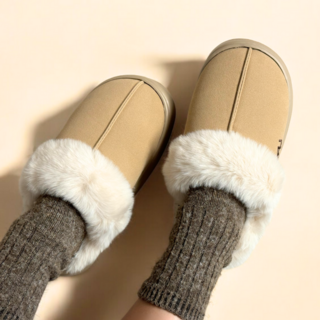 베이스알파에센셜 남여공용 스웨이드 방한 털슬리퍼