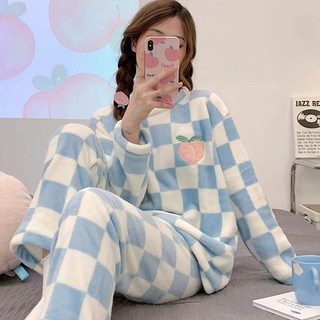 YioYcc 겨울 여자 잠옷세트 루즈핏 융털 기모 극세사잠옷