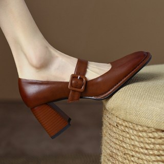 안녕릴리 여성 프렌치 메리 제인 가죽 펌프스 7cm 하이힐