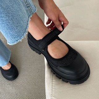 슈뿐 발편한 고프코어 벨크로 스트랩 메리제인 로퍼 통굽 키높이 운동화