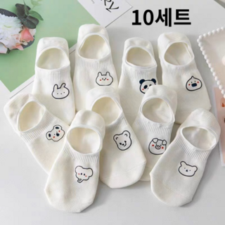 론조모니 여성용 귀여운 만화 프린트 짧은 양말 10세트