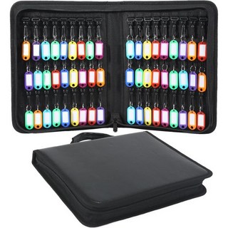 지퍼가 달린 키 케이스 손잡이가 달린 휴대용 키 오거나이저 54개의 후크 및 태그가 있는 방수 및 내화성 키 바인더 부동산 판매 호텔 경영진 집주인 자동차 렌탈용 키 박스 정리, 블랙.