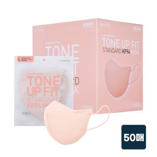 참존 톤업핏 스탠다드 황사방역용 KF94 마스크 대형, 코랄, 1개, 50개입