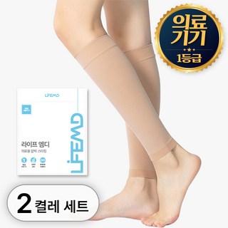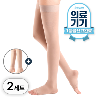 라이프엠디 2+2 의료용 압박 스타킹 발트임 허벅지형 + 종아리형 압박용 밴드 베이지 고탄력 무릎형 슬리브 붓기 완화 유발 탄력 토시 발목 발등 서포트 1등급 의료기기, 2세트