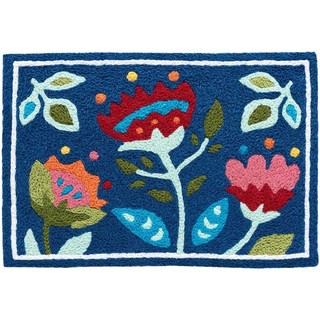 Jellybean Folk Art Flowers Accent Washable Rug 20\” x 30\” Blue, Jellybean Folk Art Flowers Acc