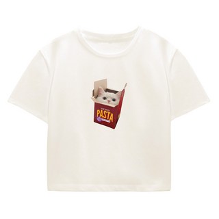 이지스튜디오 여성용 특양면 파스타캣 크롭 반팔 티셔츠