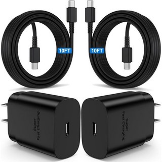 삼성 갤럭시 S24 울트라 플러스 S23 S22 S21 노트 20 노트10용 45W 초고속 충전기 타입 C 10피트 USB 월 충전 및 롱 안드로이드 휴대폰 케이블 코드 2팩, 25W, 6ft