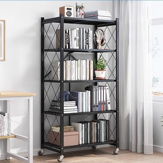 AORAN 원터치 접이식 다용도 이동식 철제 선반, 5단, 블랙