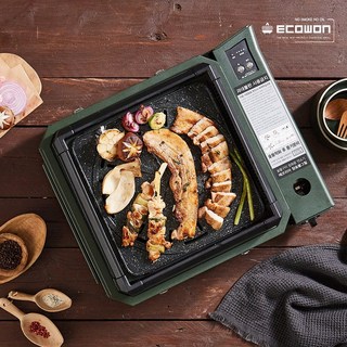 에코원 숯불 그릴 연기 냄새 없는 가정용 고기 삼겹살 불판 휴대용 버너, 카키