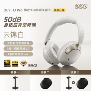 QCY 큐씨와이 H3 액티브노이즈캔슬링 PRO 무선 헤드셋 ANC LDAC 블루투스 탑재, C. 미스트 퍼플, B. 패키지 1 헤드셋 + 걸이, B. 미드나잇 블랙