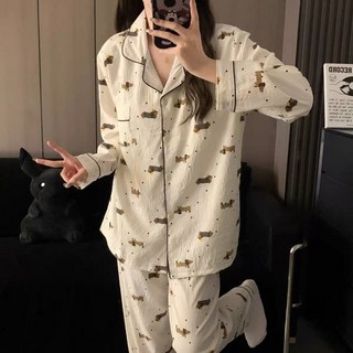 BIKASU 여성 사계절 강아지 잠옷 데일리 홈웨어 긴팔 파자마 상하의 세트