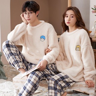 ANYOU 겨울 커플 잠옷 방한 보온 극세사커플잠옷 편안한 수면 파자마 파자마 세트