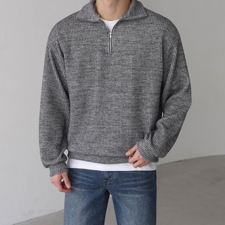 베이직바이블 골지 반집업 니트 맨투맨 오버핏 티셔츠 긴팔 코디