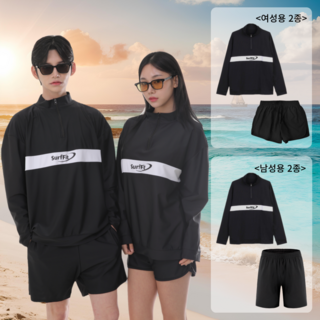 써핏 오버핏 커플 반집업 래쉬가드 상하의 세트 SFRC011, 블랙