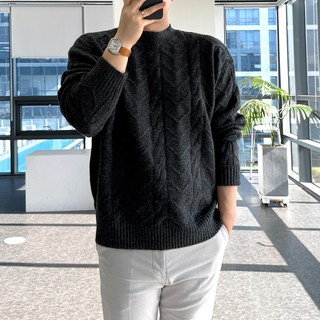 룩플레인 포근하고 고급스러운 울 오버핏 케이블 니트 3color
