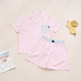 모던하우스 위캔드 60수 면 멀티 스트라이프 숏 통기성 파자마 상하의세트