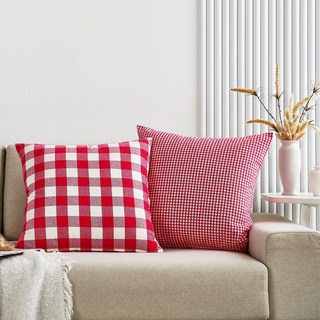 [모던하우스]리사이클 코튼믹스 체크 쿠션커버 2P세트 체리_EM0925015