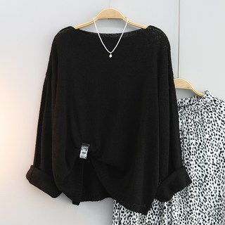 샵159 여성용 메이 보트넥 시스루 루즈핏 여름 긴팔 니트