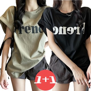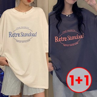 [1+1] 드마엘 오버핏 레터링 여성 반팔 티셔츠