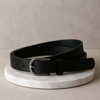 둥근 버클 슬림 폭 가죽 레더 벨트 (2컬러)