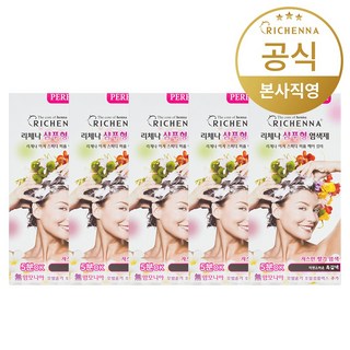 리체나 퍼퓸 새치전용 샴푸형 염색제, 자연스러운 흑갈색, 5개