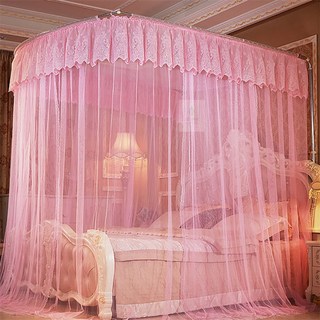 고급형 북유럽 망사 침대 캐노피 + 금색 별장식, 핑크